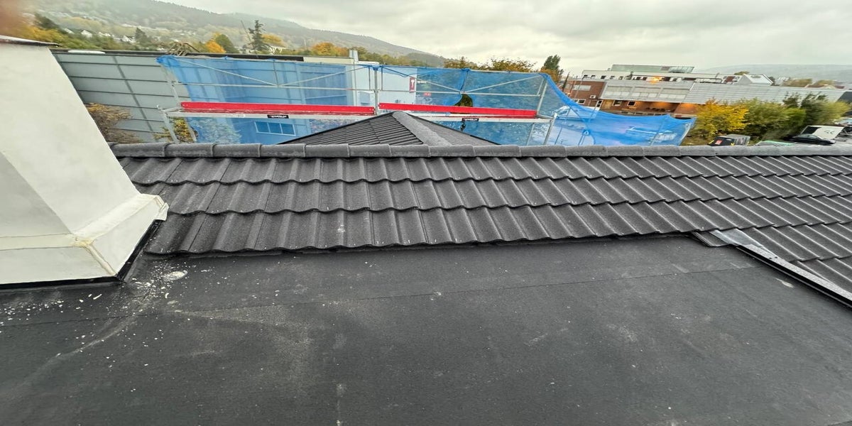 For det flate taket, installerte vi Sveisepapp, en slitesterk og vanntett membran som gir langvarig beskyttelse mot vanninntrengning. Dette materialet er spesielt godt egnet for flate tak og gir ekstra beskyttelse mot vær og vind.